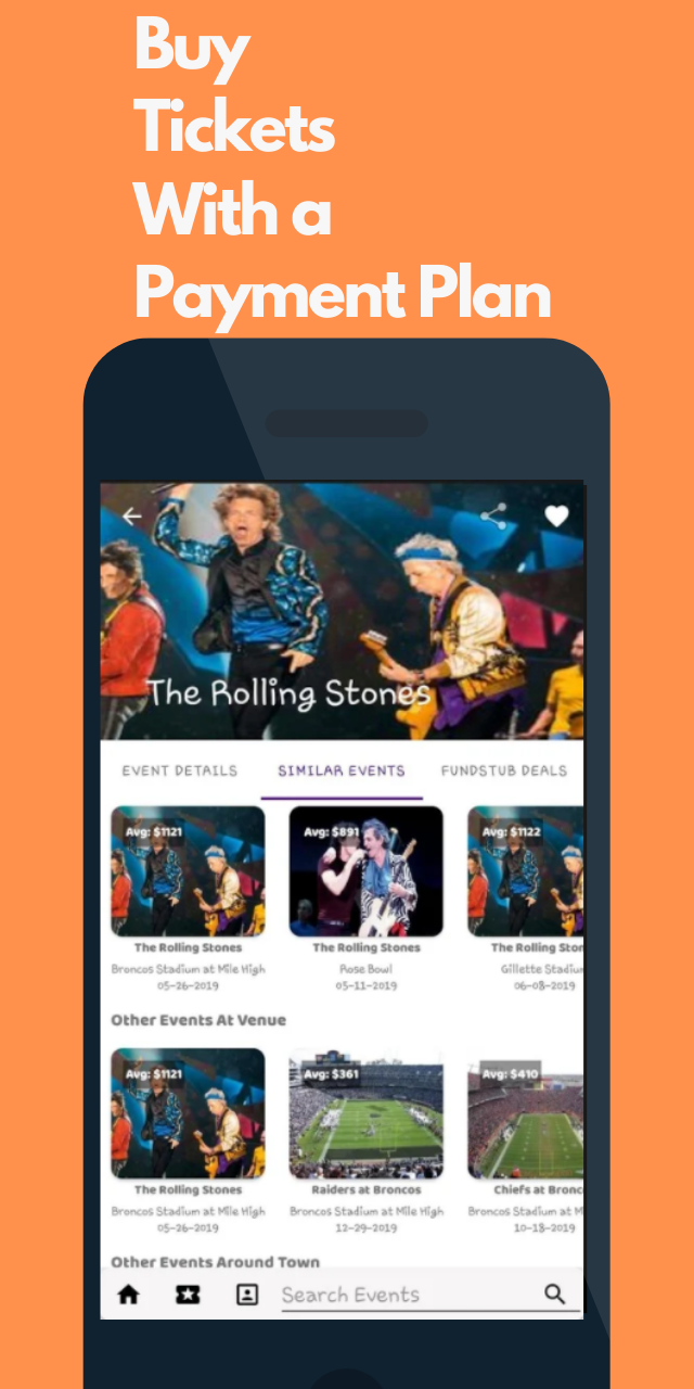 FundStub is an app that allows people to purchase events with a simple payment plan and ZERO credit checks. Events include sports, concerts, comedy, theater & many more.
